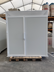 Made with a metal structure and 30 mm thick insulated panels. The finishes and interior accessories make this toilet the most appropriate solution for assisting urban service personnel on public roads. Fully equipped, with sink, paper roll holder, mirror, grab bar, trash can, ramp and natural and LED lighting.