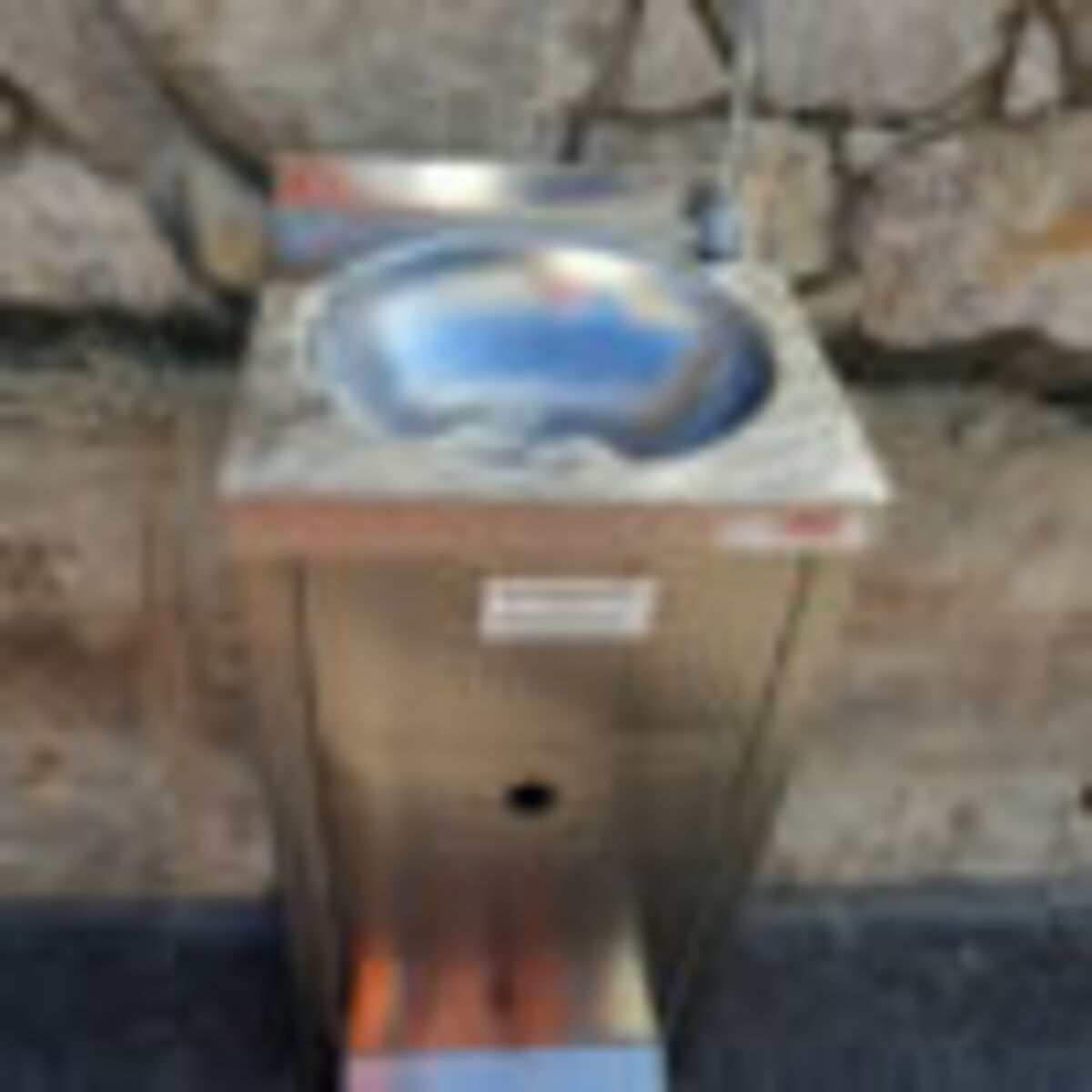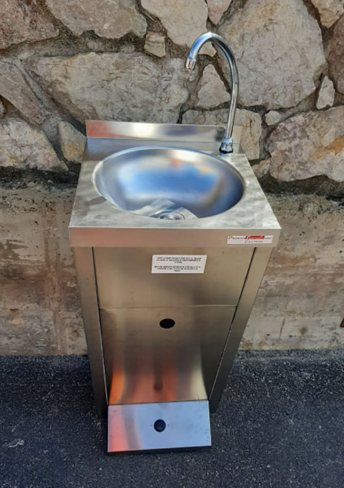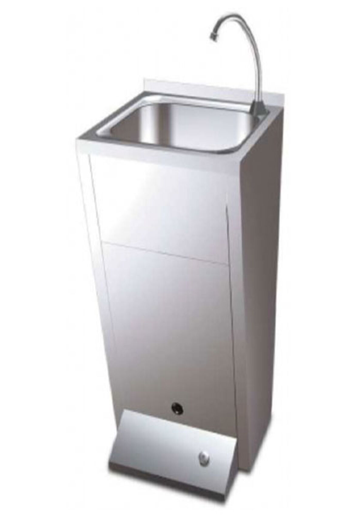 Lavamanos Higiénico individual. Módulo de pie integral de dimensiones reducidas con pulsador.