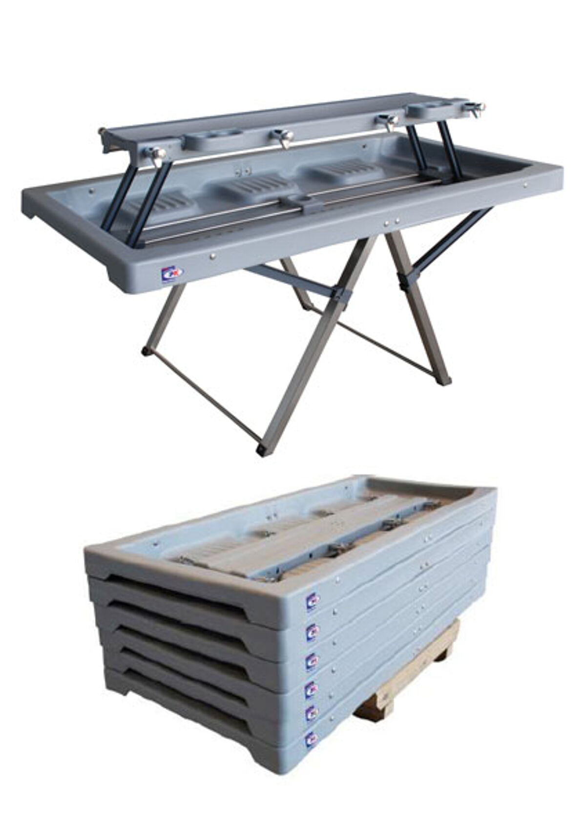 Es almacenable en conjuntos de 10 unidades para su transporte y en conjuntos de hasta 16 unidades para su almacenamiento. Su diseño aporta muy buenas cualidades logísticas y de versatilidad.