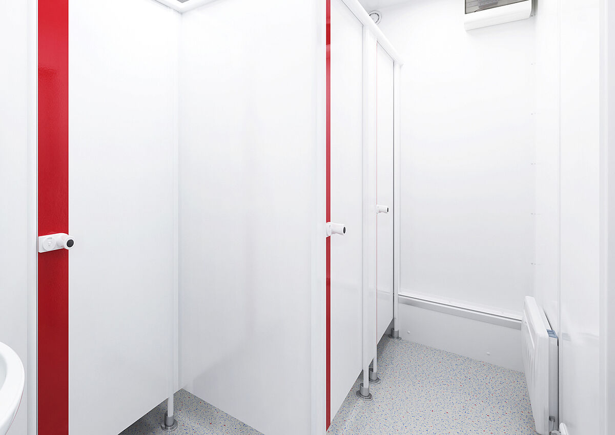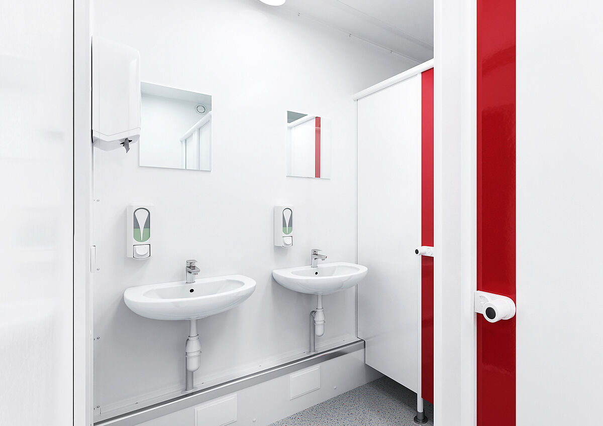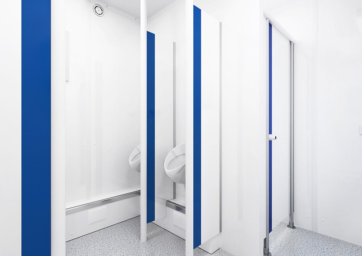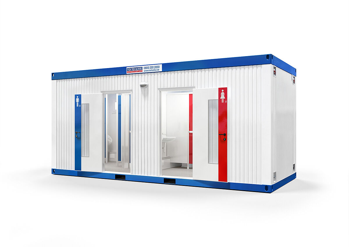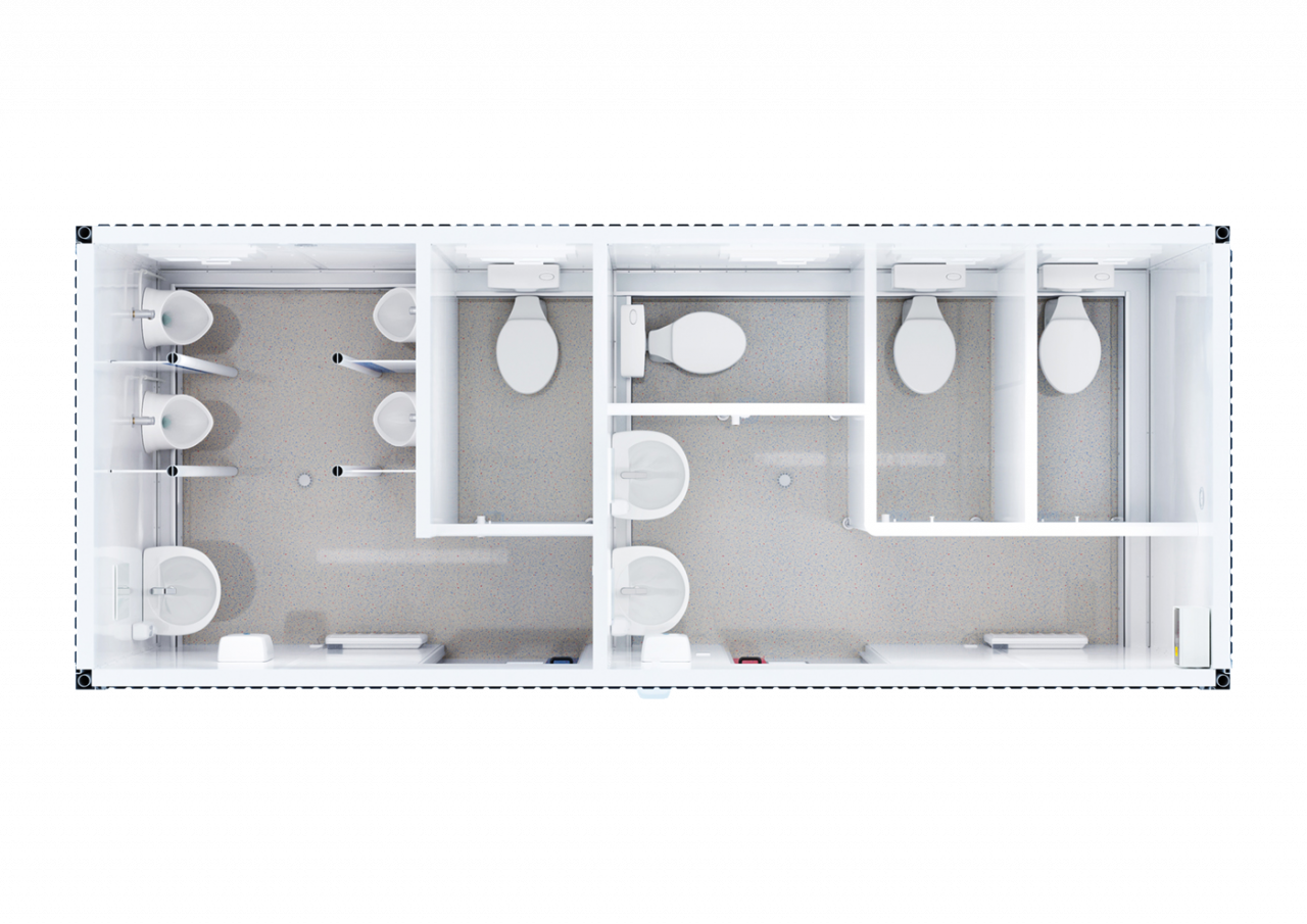 O contentor sanitário H/M da linha Basic é extremamente compacto e eficiente. A área de cerca de 15 m² é utilizada ao máximo. Graças à sua divisão inteligente, pode ser utilizado por até oito pessoas em simultâneo.