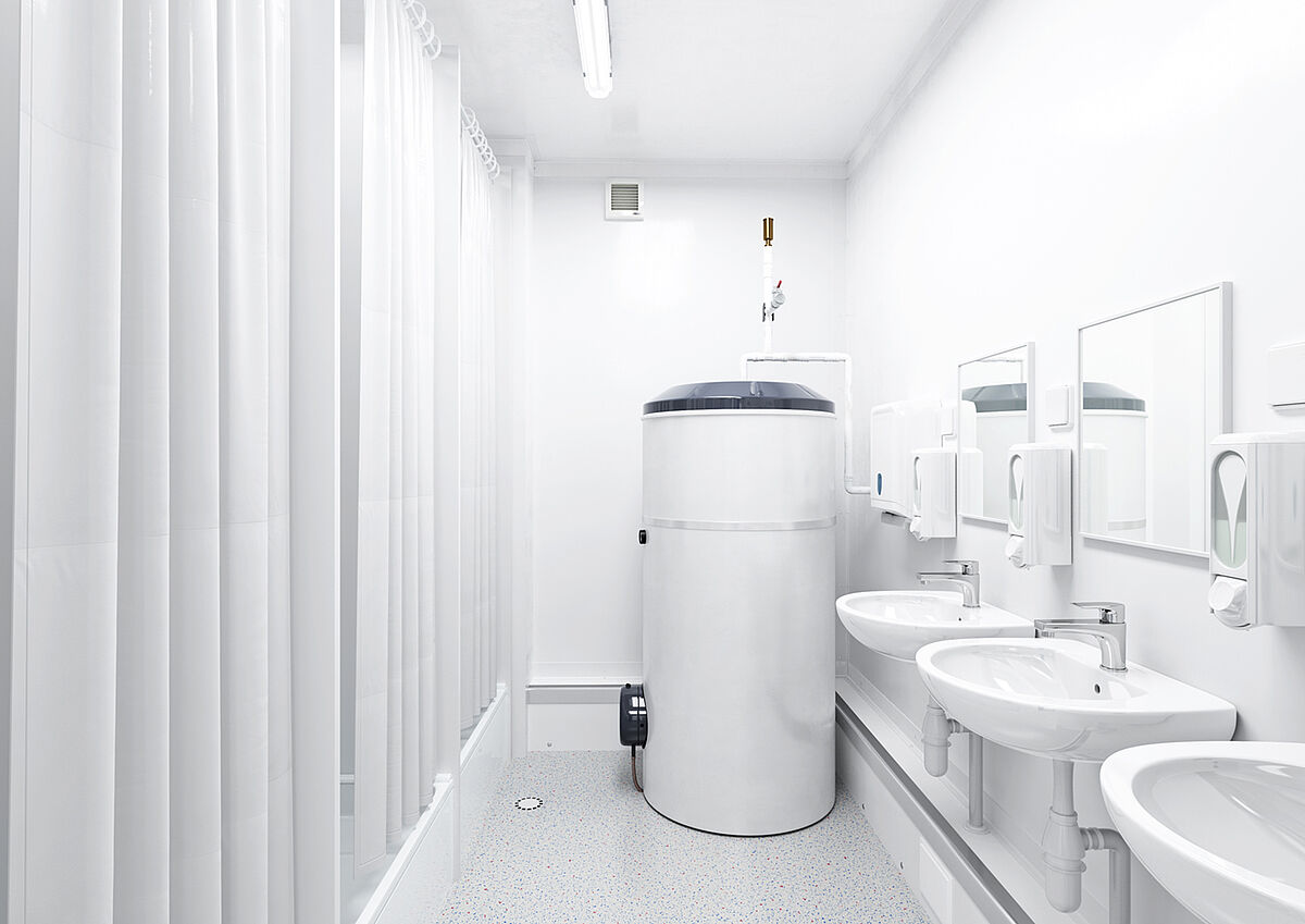 Procura duche, lavatório e sanita numa só unidade? Temos a solução: o contentor de duche/WC combina todas as funcionalidades num único módulo.
