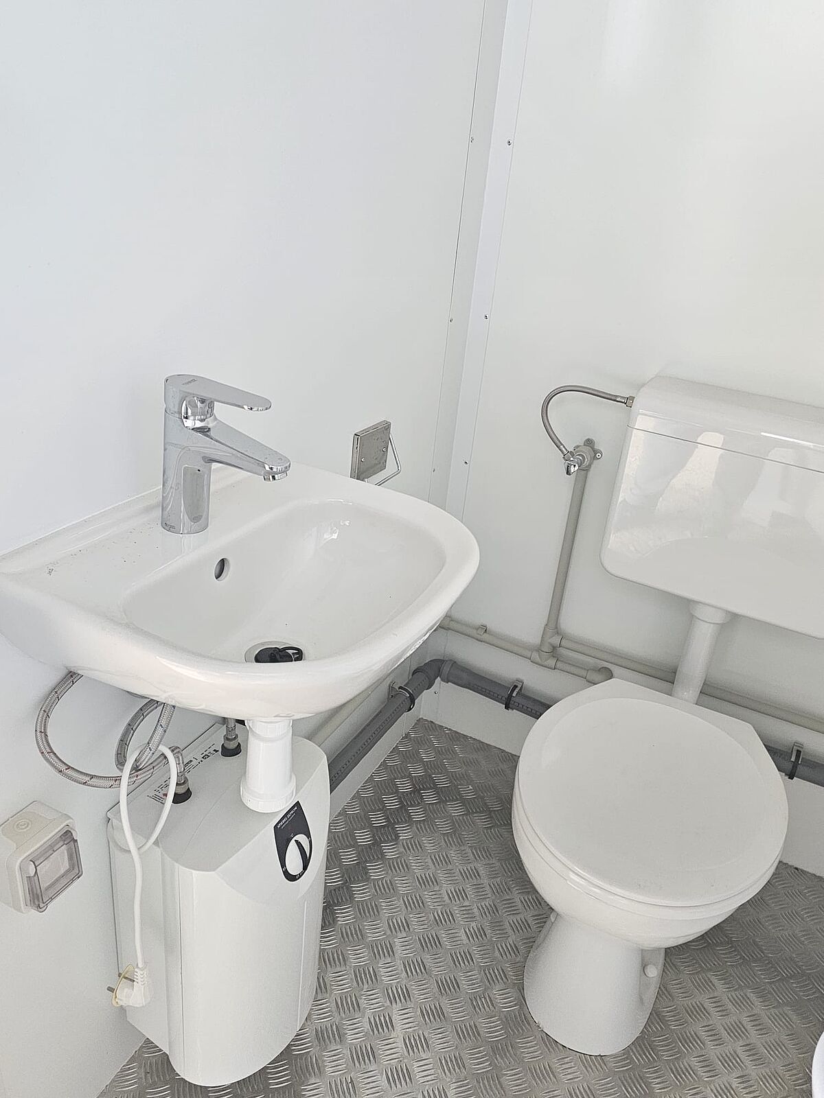O TOI® ROCKY DUO combina robustez, flexibilidade e bem-estar. O módulo sanitário móvel está completamente isolado e desafia todas as condições climáticas, como calor e frio. Tanto no exterior como no interior, os acabamentos são de alta qualidade. É um produto ideal para eventos e projetos de construção. O módulo possui iluminação e necessita de ligação à rede de água, rede de saneamento e ligação elétrica.