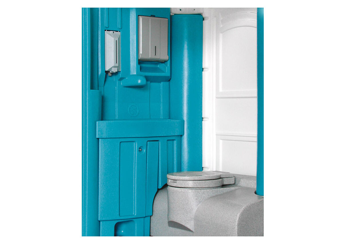 Para além do WC e do urinário, o equipamento inclui um lavatório extragrande. O TOI® WATER satisfaz de forma ótima as elevadas exigências de sanidade nas obras, graças ao seu lavatório especialmente grande, onde é possível lavar até o antebraço inteiro. Desta forma, o TOI® WATER garante o máximo nível de proteção dos trabalhadores. O pacote de equipamento completa-se com um abastecimento de água de 60 litros com uma bomba de pé estável, um doseador de sabão e um doseador de toalhas de papel. Para poupar espaço, o sistema está integrado na parede lateral. Robustos, leves e atraentes, estes módulos sanitários são de alta qualidade em todos os aspetos.